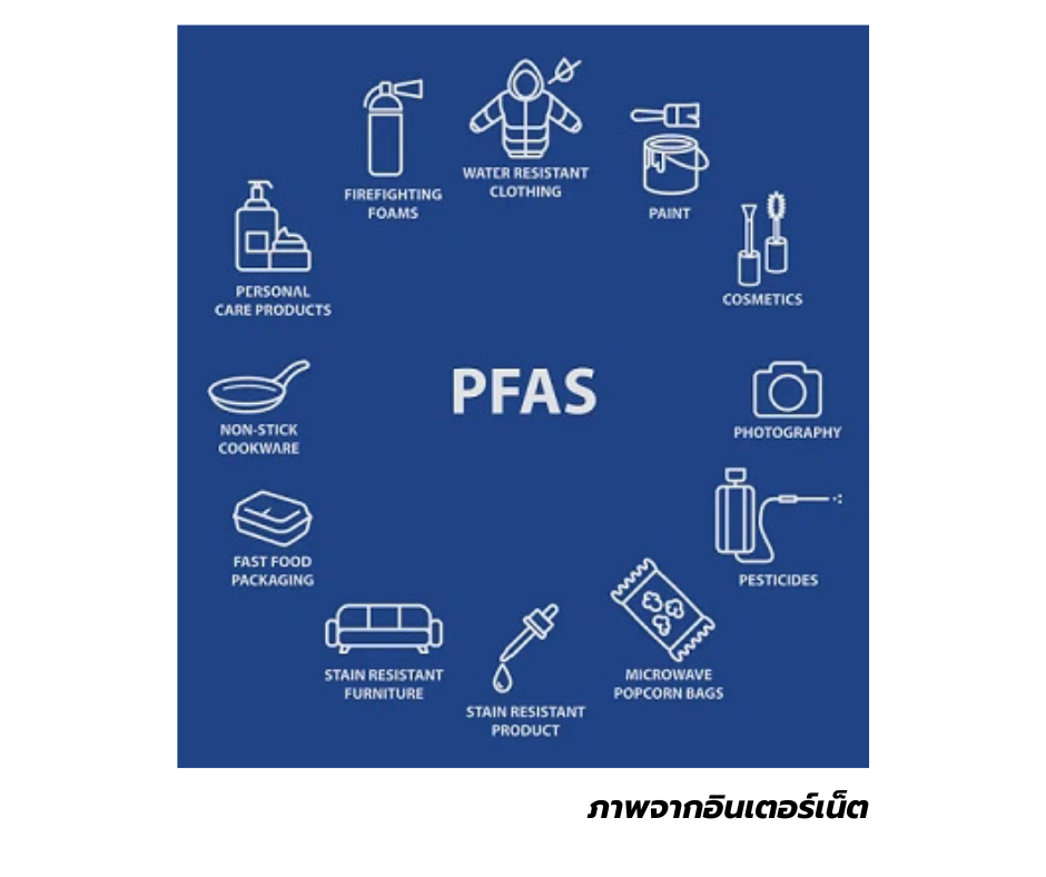 PFAS หรือสารเพอร์และโพลีฟลูออโรอัลคิล (Per- and Polyfluoroalkyl Substances) คือสารเคมีสังเคราะห์ที่มีคุณสมบัติทนทานต่อน้ำและน้ำมัน สาร PFAS ถูกนำมาใช้ในผลิตภัณฑ์หลากหลายชนิด เช่น บรรจุภัณฑ์อาหาร เครื่องสำอาง สิ่งทอ โฟมดับเพลิง เป็นต้น ในอุตสาหกรรมสิ่งทอ PFAS นำมาใช้เพื่อทำให้เสื้อผ้ากันน้ำและทนทาน เช่น เสื้อกันฝน ชุดกีฬา หรือถุงเท้า อย่างไรก็ตาม สาร PFAS เป็นสารเคมีอมตะ (forever chemicals) ที่ไม่สลายตัวง่ายและสามารถสะสมในสิ่งแวดล้อมและร่างกายได้ ก่อให้เกิดความเสี่ยงต่อสุขภาพ เช่น เพิ่มความเสี่ยงต่อโรคมะเร็งบางชนิด ปัญหาเกี่ยวกับระบบฮอร์โมนและระบบภูมิคุ้มกัน ปัจจุบันกฎหมายในหลายพื้นที่เริ่มห้ามใช้สาร PFAS